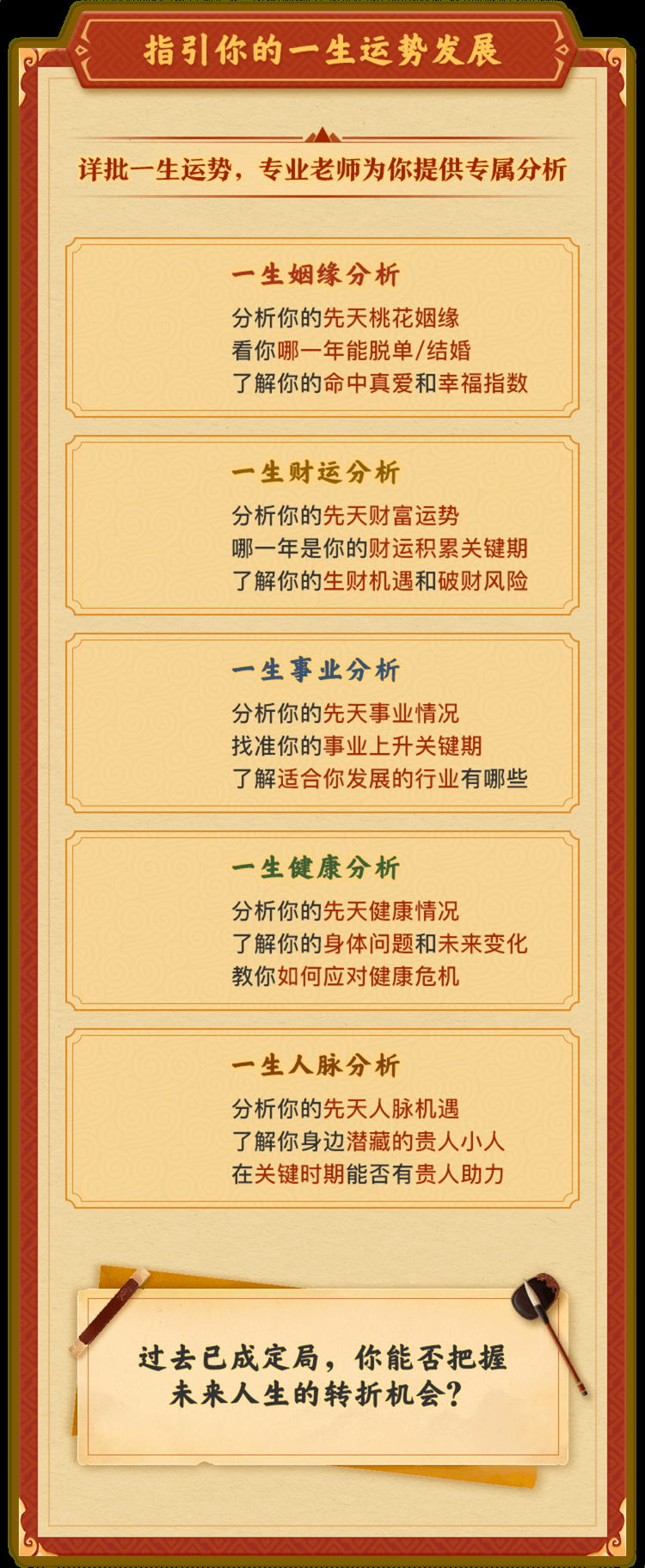 2.1 当您使用一些功能时,我们会在获得您的同意后,收集您的一些隐私信息,例如提供测试服务时,我们需要您的姓名和生辰或其他个人信息进行分析;为了保存您的分析报告结果,我们需要获取您的手机或邮箱。如拒绝提供这些信息会使您无法使用相关特定功能。